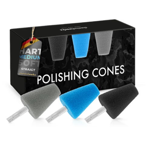 Die chemicalworkz® Polishing Cones Straight sind die perfekte Wahl, wenn es um präzises Polieren in engen Bereichen, schmalen Spalten oder filigranen Fahrzeugdetails geht. Das Set umfasst drei Polierkegel in abgestuften Härtegraden – Hart (Grau), Medium (Blau) und Weich (Schwarz) – und wird in einer robusten Aufbewahrungsbox geliefert.