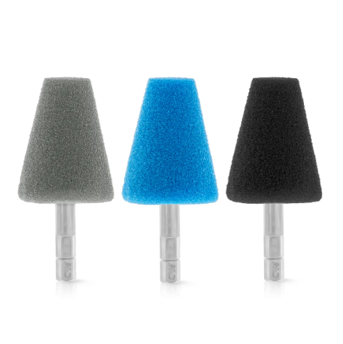 Set mit 3 konischen Polierkegeln (Hart – Grau, Medium – Blau, Weich – Schwarz)