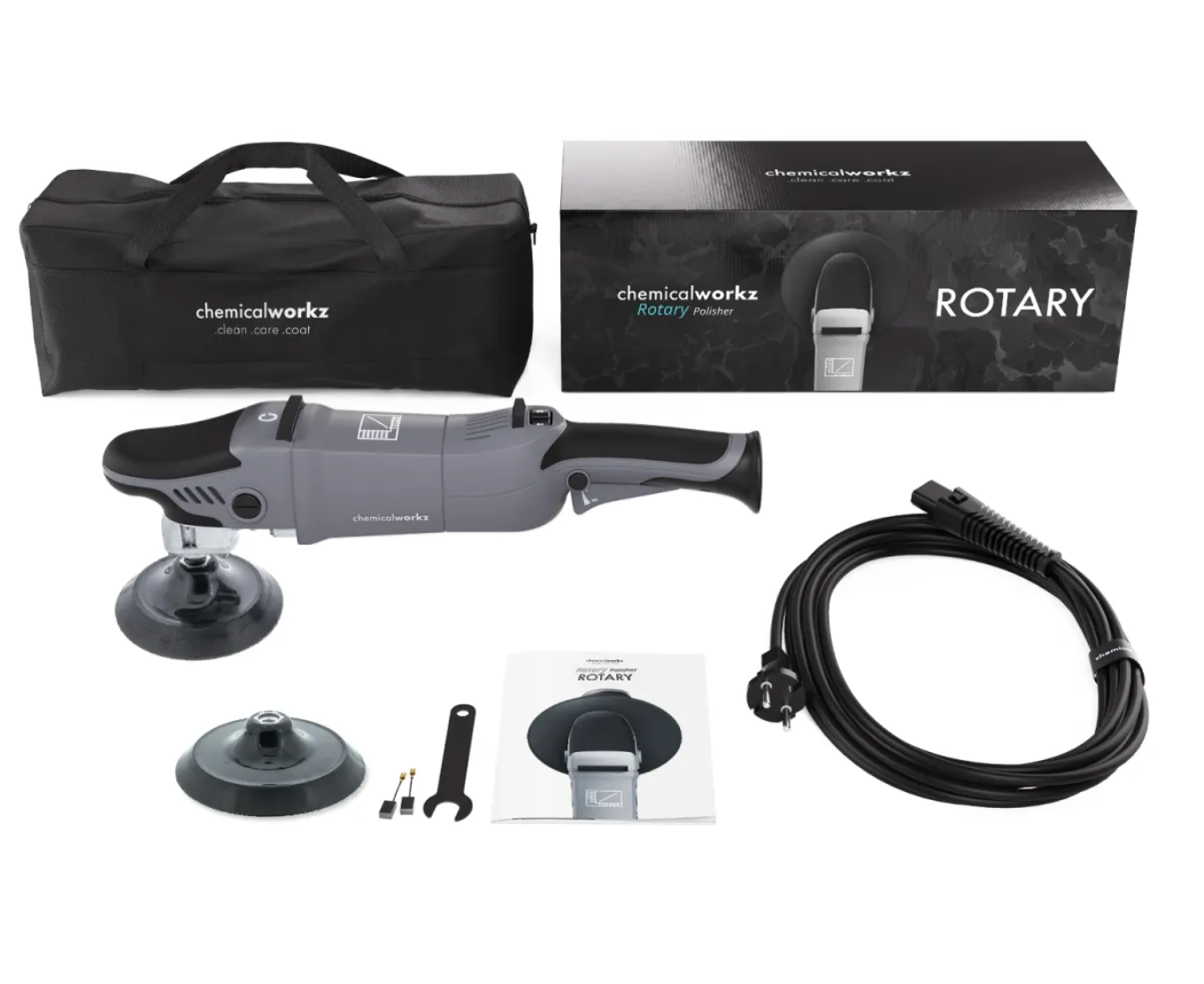 Willkommen in der Welt kompromissloser Rotationskraft: Die chemicalworkz® Rotary ist die neueste Ergänzung der Pro Polisher Series und wurde speziell für professionelle Fahrzeugaufbereitung entwickelt. Mit einem kraftvollen 1200-Watt-Motor, einem sanften Anlauf, stufenloser Drehzahlregelung von 450 bis 1950 U/Min und einem ergonomischen Design bietet sie maximale Kontrolle, konstante Performance und kompromisslose Effizienz auf allen Lackarten.