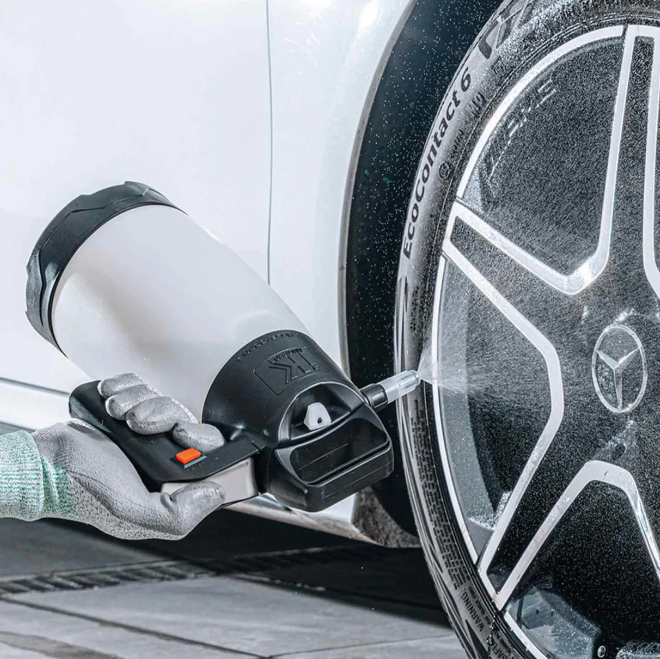 Dank der 360° Sprühfunktion kann das Gerät auch über Kopf oder in schwer zugänglichen Positionen eingesetzt werden. Dadurch eignet sich der Sprüher besonders gut für Arbeiten an Fahrzeugen, unter Bauteilen oder an vertikalen Flächen.