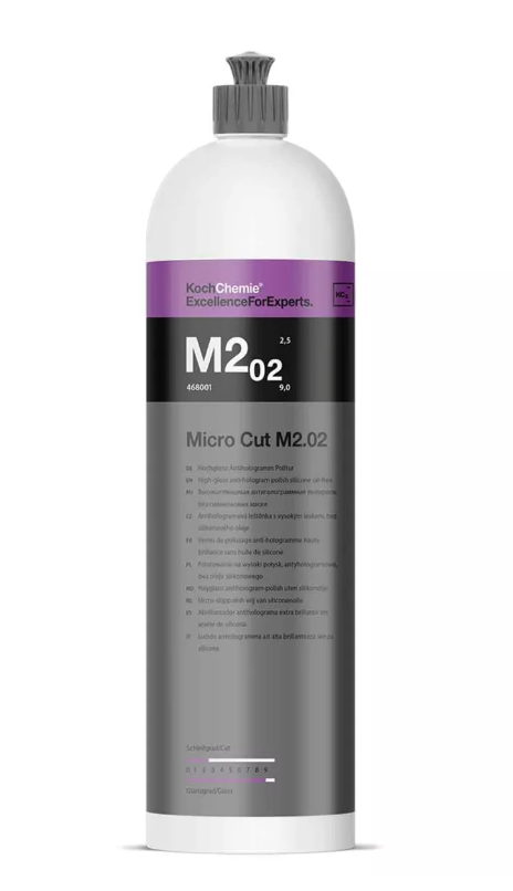 Koch Chemie Micro Cut M2.02 ist die ideale Politur für das Beseitigen feiner Kratzer und Hologramme, die den perfekten Glanz Ihres Fahrzeugs beeinträchtigen. Diese speziell entwickelte Politur nutzt feinste Schleifpartikel, um Lackdefekte gezielt und schonend zu beheben.