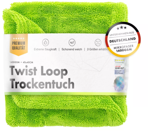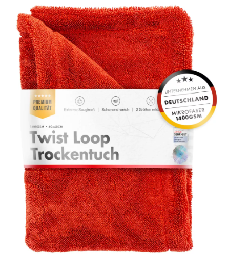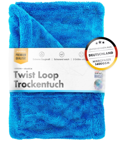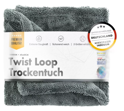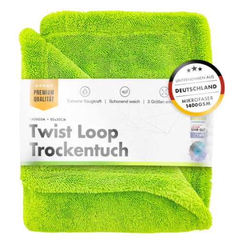 Die innovative Twisted Loop Technologie des Tuchs sorgt dafür, dass jedes Wassertröpfchen erfasst und restlos entfernt wird. Diese Technologie stellt sicher, dass keine Streifen oder Wasserrückstände zurückbleiben, sodass Ihr Fahrzeug nach jedem Waschen in perfektem Glanz erstrahlt.